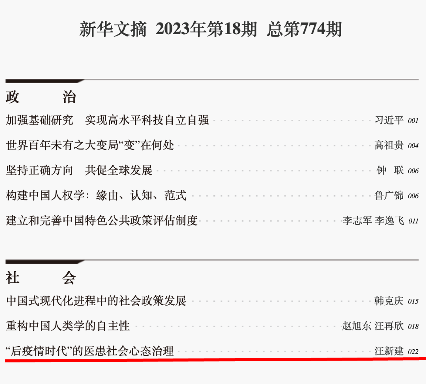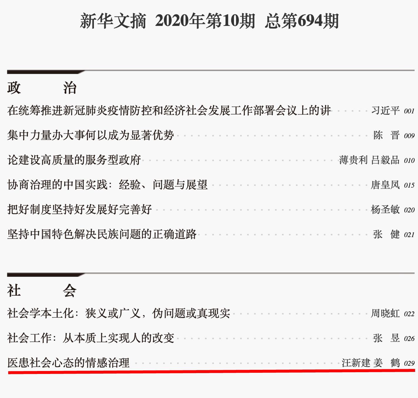 此后,团队进一步将医患信任研究拓展至内容更为丰富的医患社会心态研究。团队有两篇论文《医患社会心态的情感治理》和《“后疫情”时代的医患社会心态治理》分别为《新华文摘》2020年第10期和2023年第23期转载。团队另有多篇论文为《新华文摘》论点摘要栏目、《中国社会科学文摘》《高等学校文科学术文摘》《社会科学文摘》《人大报刊复印资料》等刊物转载。