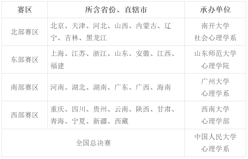 各个赛区的划分及承办单位如下表所示: