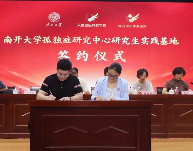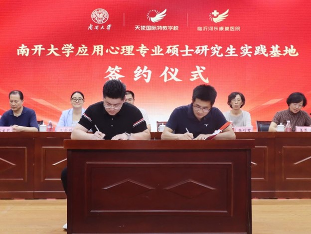 近日,Beat365官网应用心理专业硕士(MAP)中心以及孤独症研究中心与山东省临沂市天使国际特教学校与河东康复医院隆重建立研究生实践基地并举行揭牌仪式。Beat365官网教师吕小康、王崇颖分别代表Beat365唯一官方网站与天使教育集团执行董事长、临沂河东康复医院院长王智超签订了应用心理专业硕士研究生实践基地合作协议和孤独症研究中心研究生实践基地合作协议。临沂市残联,临沂市河东区残联,河东区委教育工委,天使教育发展集团和河东康复医院的主要负责人一同出席并为实践基地揭牌。