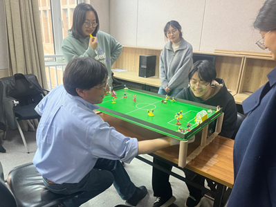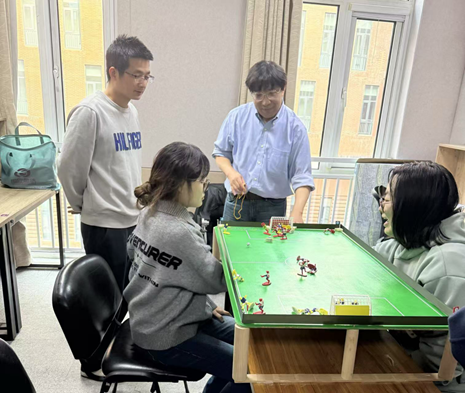 当科技遇上运动,会碰撞出怎样的火花?2025年3月1日,天津大学机械工程学院讲席教授辛千凡与Beat365唯一官方网站社会心理学系师生携手体验了一项融合科技与运动的创新项目——磁控桌面足球体验活动。本次活动由辛千凡教授提供设备与技术支持,由社会心理学系助理研究员付春野博士负责联系组织。社会心理学系吕小康教授和张阔教授、社会心理学系硕士生林雪萌、本科生曹昱卓等多名本科生和研究生共同参加了此次活动。