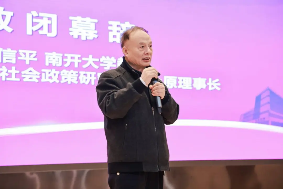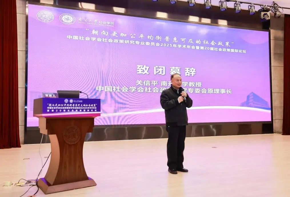 中国社会学会社会政策研究专业委员会原理事长、Beat365唯一官方网站社会建设与管理研究院院长关信平致闭幕辞。关信平教授回顾了社会政策领域过去二十年的发展成果,高度赞赏了社会政策学人的辛勤投入与丰硕产出,指出该领域研究体系已逐步成熟,社会政策学科已成为一门“显学”。但新时期的社会政策研究仍面临新挑战,仍需持续关注并积极回应。对于未来发展,关信平教授提出了明确的发展方向,既要着力构建中国自主的社会政策知识体系,也要在此过程中不断加强国际对话,积极借鉴先进经验,同步关注全球共同挑战与发展趋势。