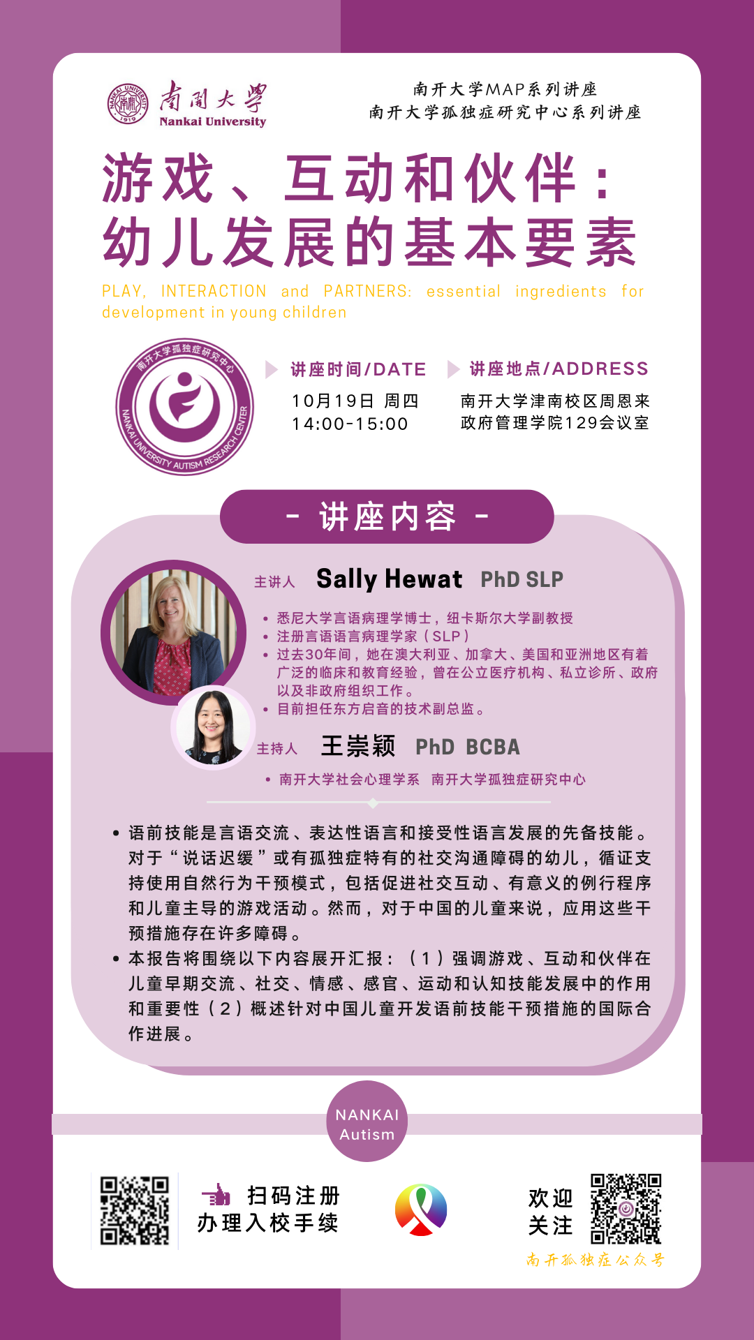 主持人: 王崇颖 Beat365唯一官方网站周恩来政府管理学院 Beat365唯一官方网站孤独症研究中心