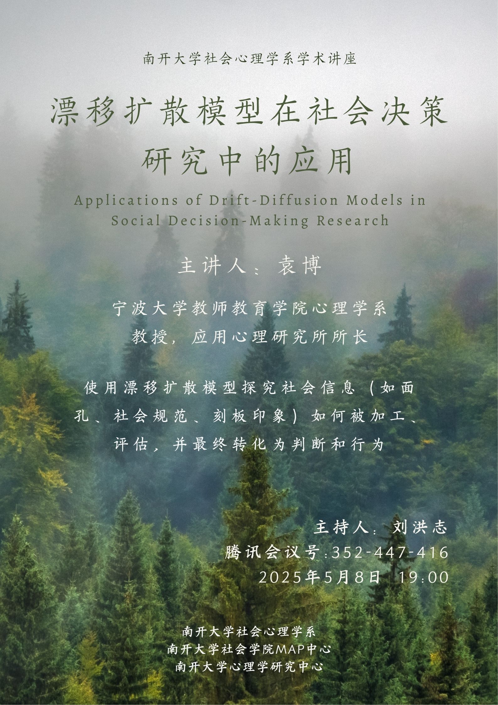 讲座题目:漂移扩散模型在社会决策研究中的应用