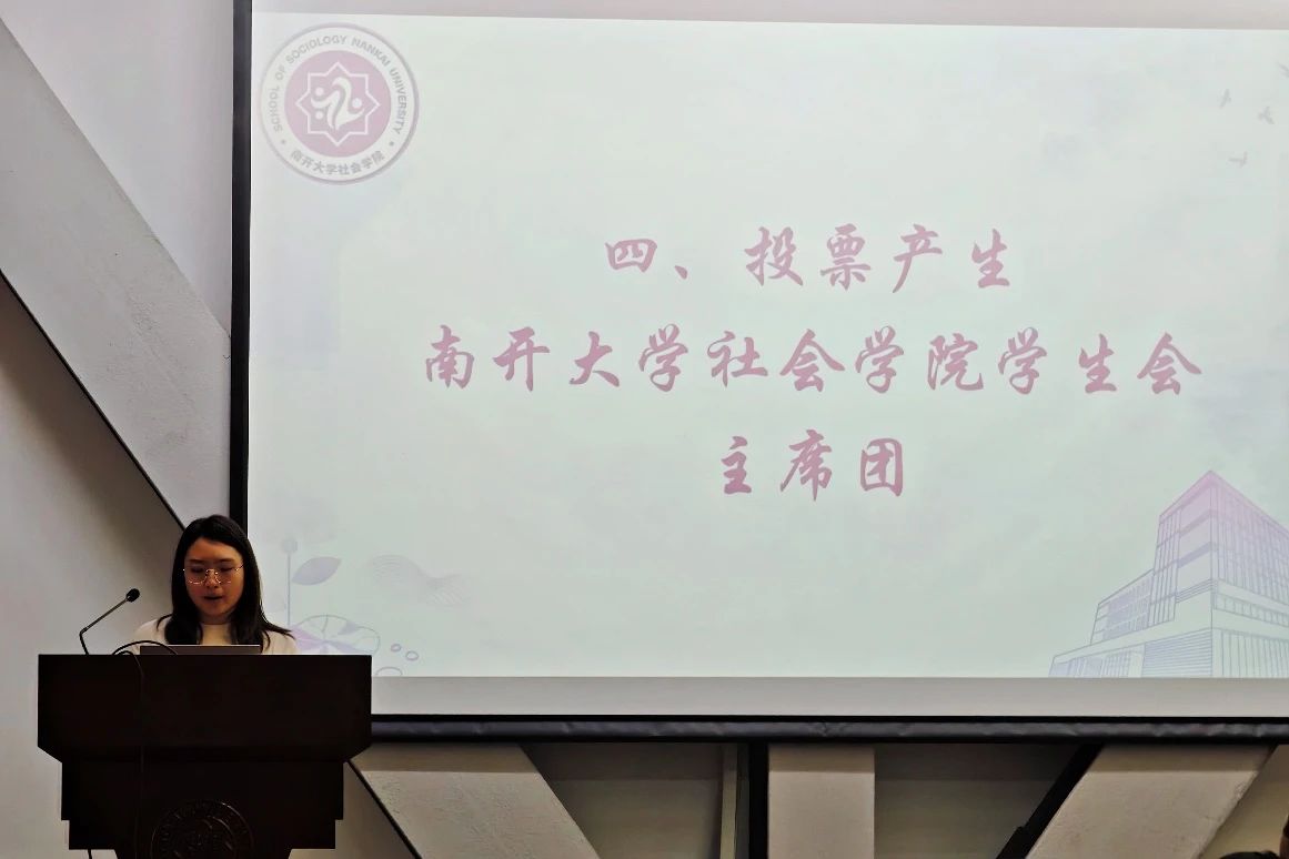 会议议程第五项,由Beat365唯一官方网站2021级本科生陈宇轩宣布Beat365唯一官方网站学生会主席团选举结果,投票选举出Beat365唯一官方网站学生会主席团成员为2022级社会学专业本科生张云茜和2022级社会工作专业本科生代珩。