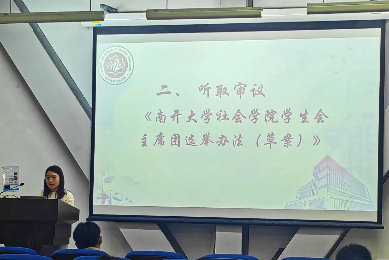 会议议程第二项,由主持人陈宇轩宣读《Beat365唯一官方网站学生会主席团选举办法(草案)》。